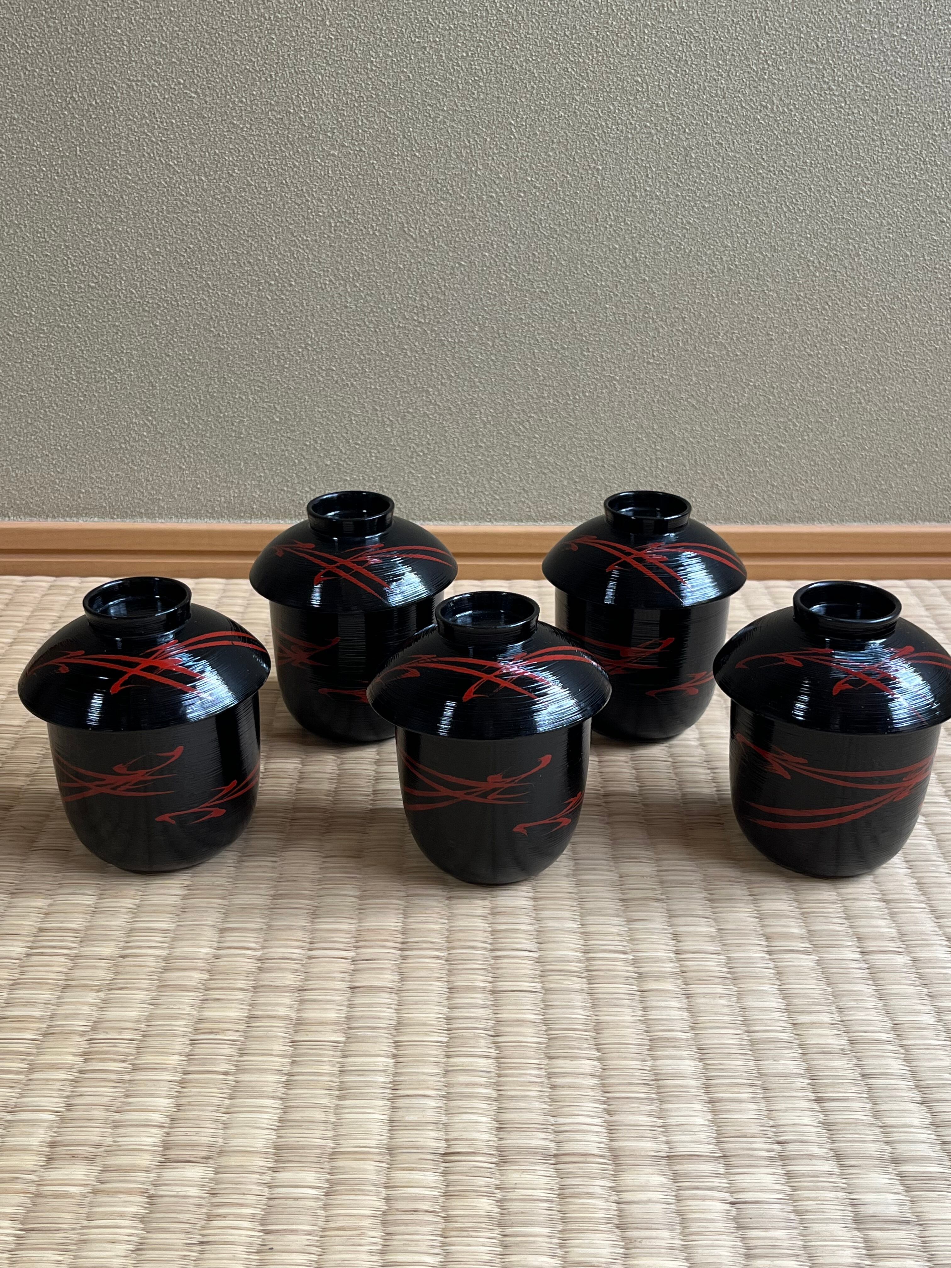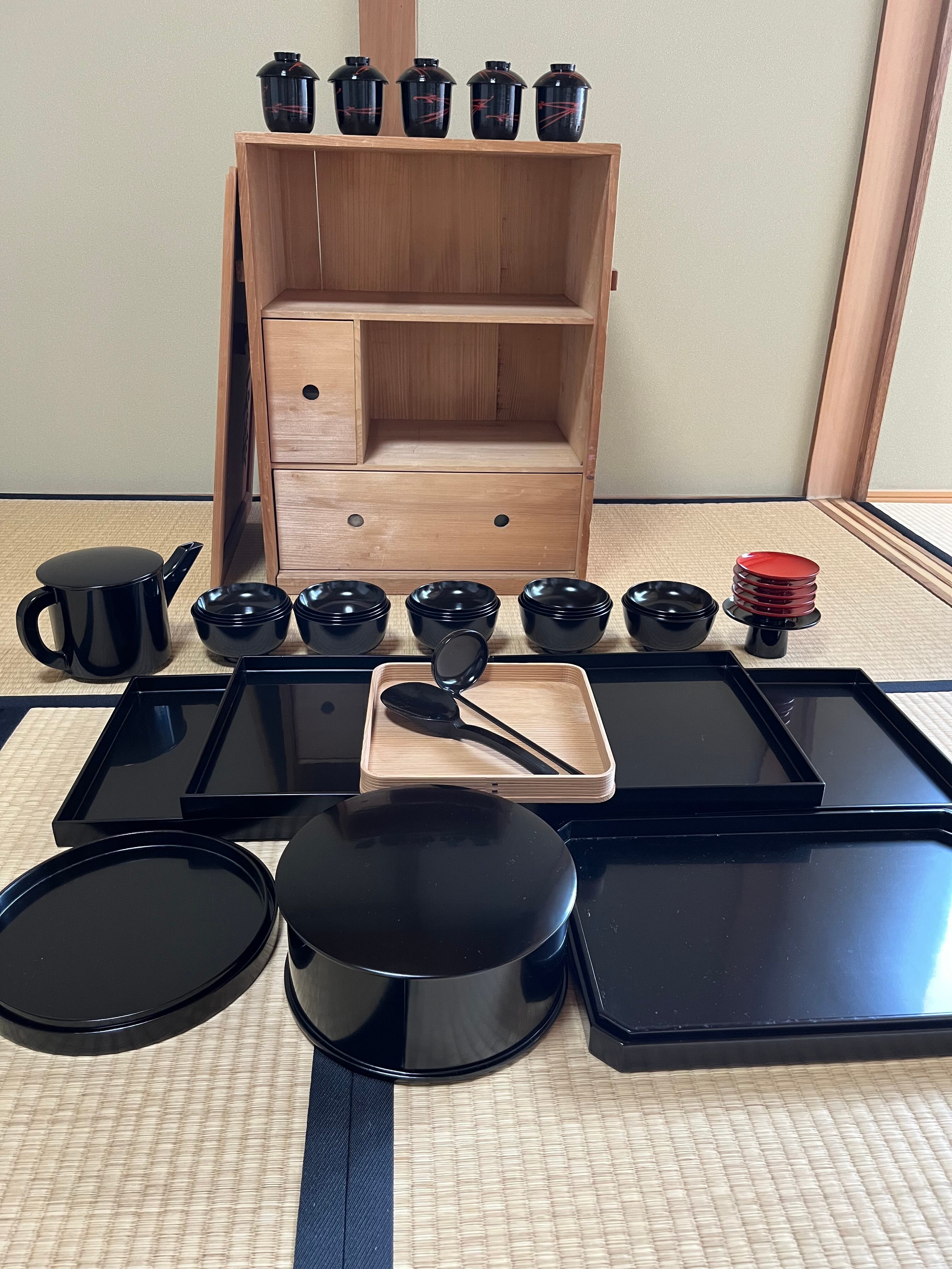 小丸椀5 小吸物椀5 折敷膳5 脇引入子2 丸盆入子2 湯斗1    湯の子すくい1