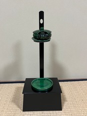 黒 短檠、雀瓦(松楽)セット 短檠箱無し、雀瓦ボール箱 古物