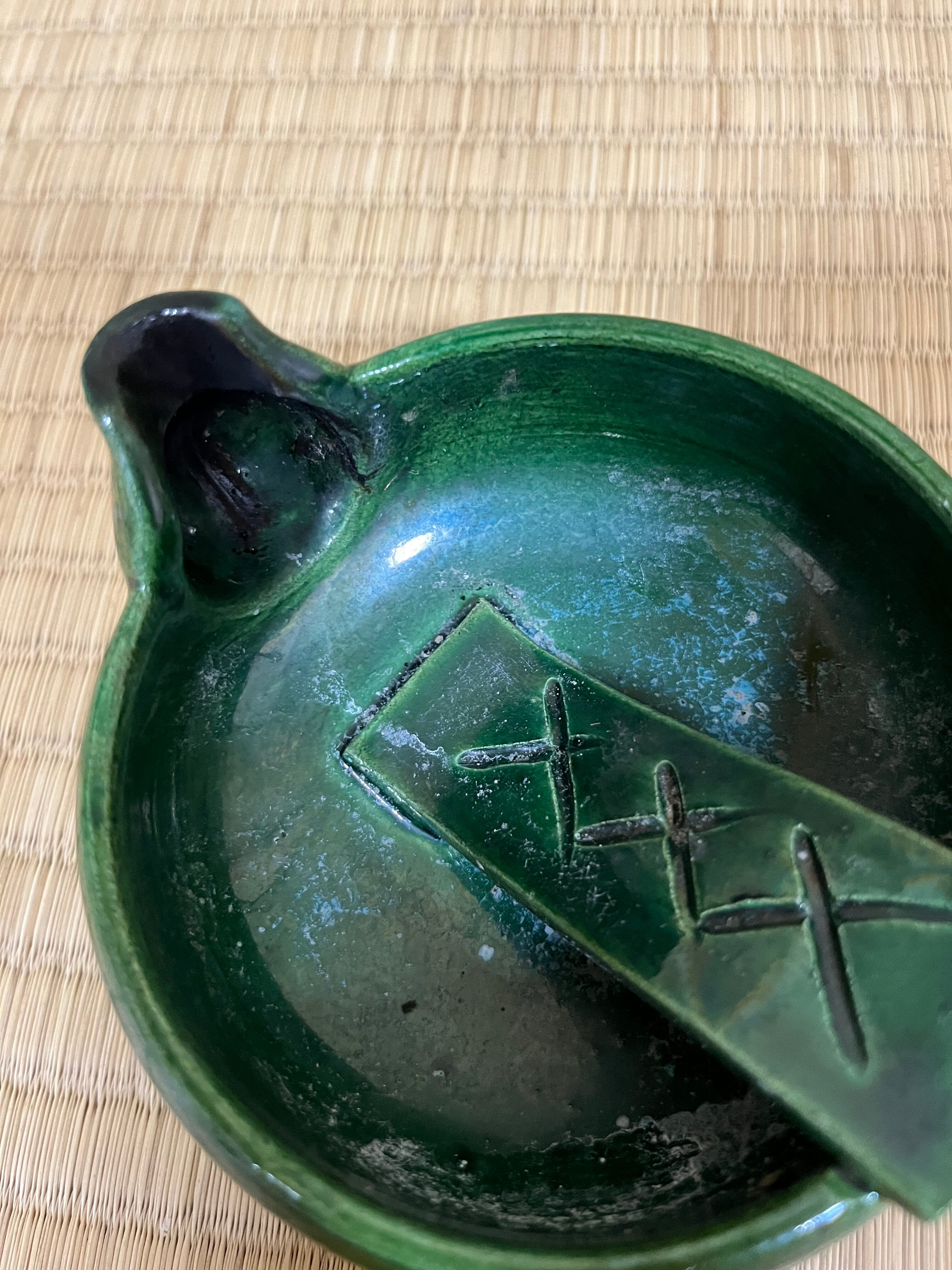 溜 短檠 雀瓦(松楽)セット 短檠箱なし 雀瓦ボール箱 古物