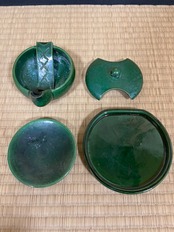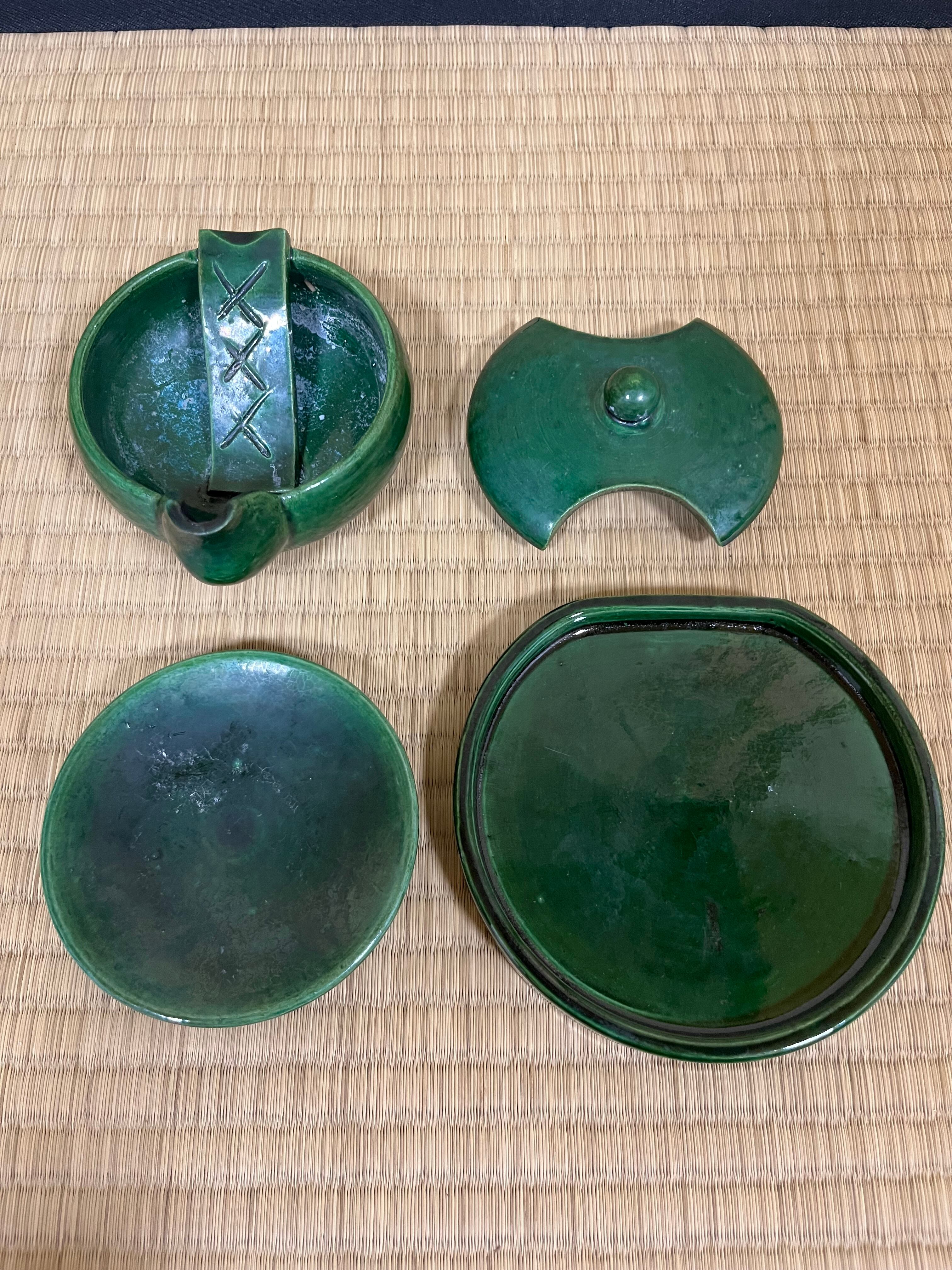 雀瓦 下皿13.5  受皿10.2  雀瓦の口までの径11.5  摘みまでの高さ7.5  青楽 松楽窯