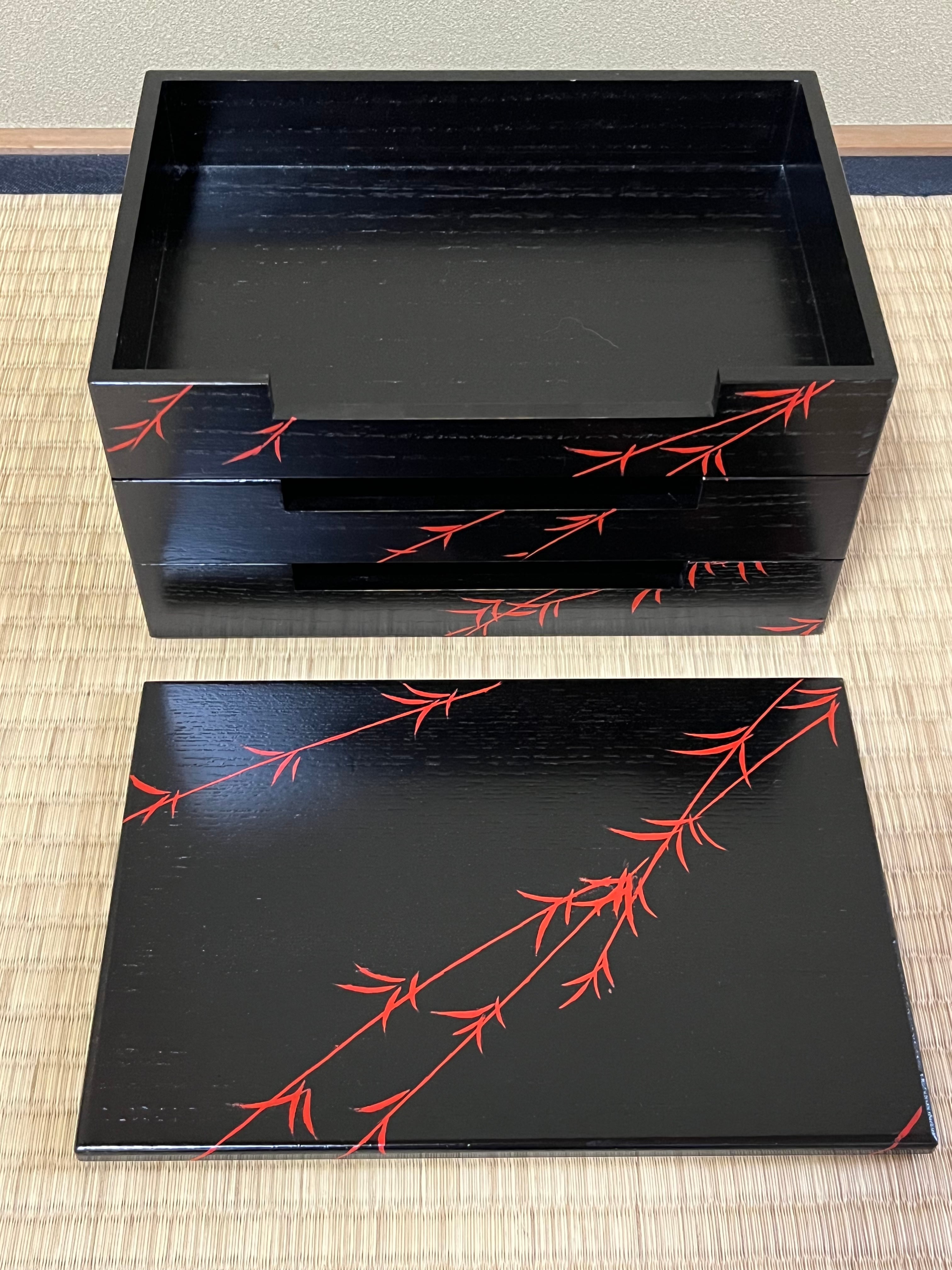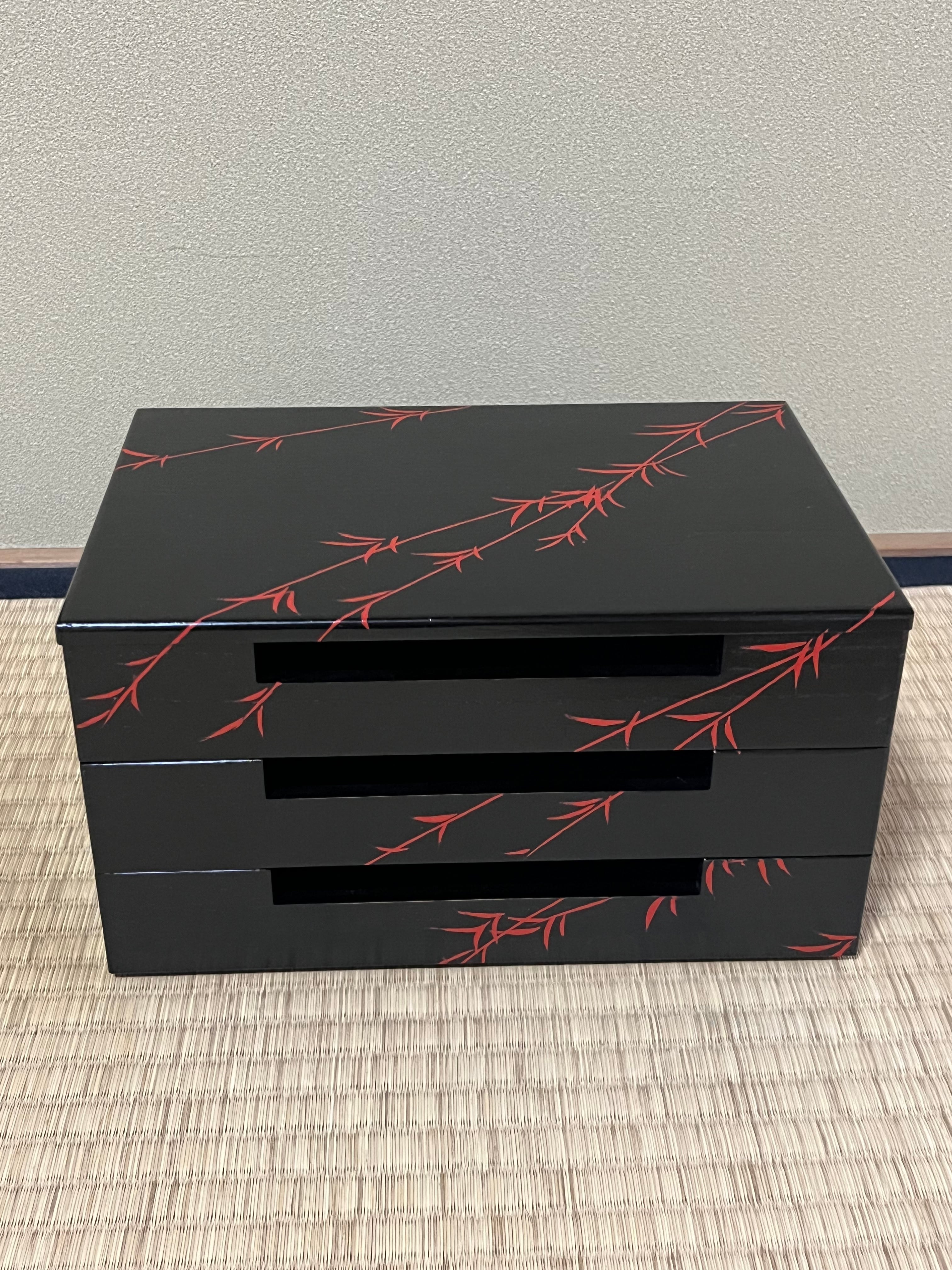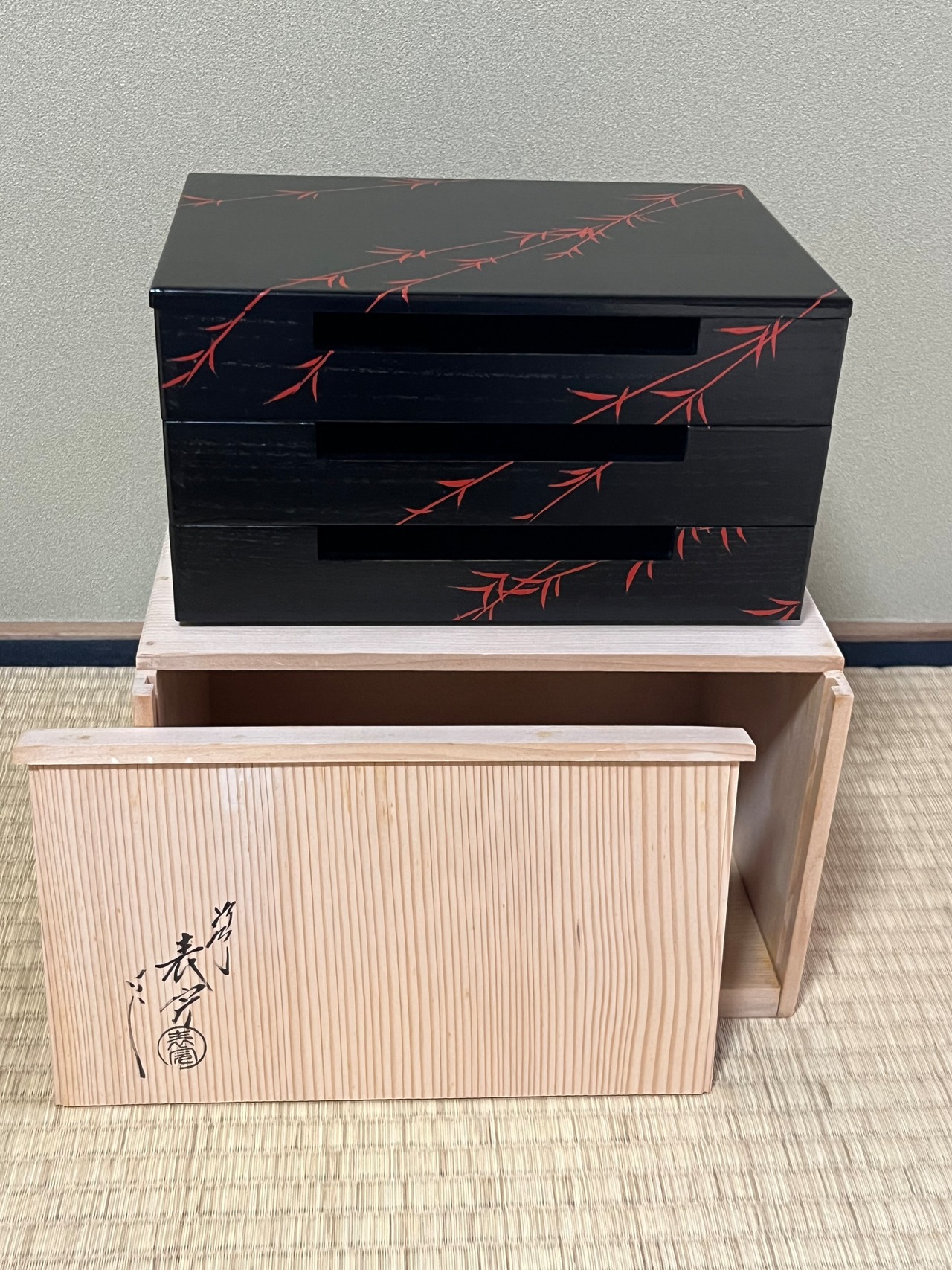 田楽箱の菓子器です。春のお花見の趣向に、お団子を入れたらぴったりですが、これからの季節に、お茶事で味噌田楽などを入れてもおもしろそうです。