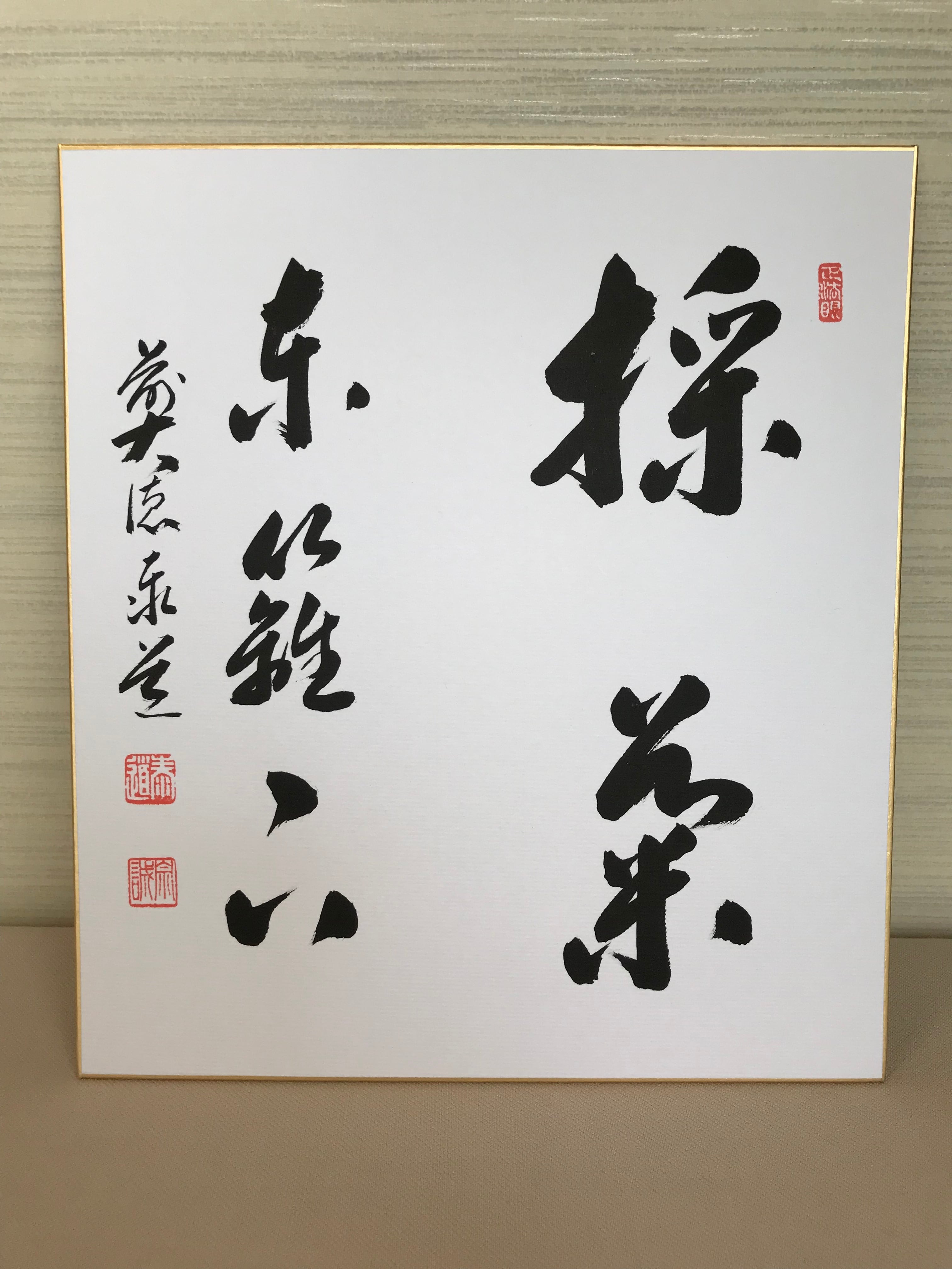 色紙 採菊東籬下 足立泰道筆 タトウ入 新物